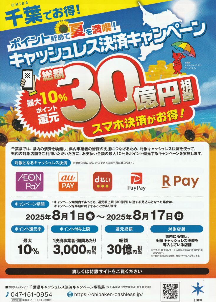 📣【夏の千葉キャッシュレス還元】8月1日スタート!🏖