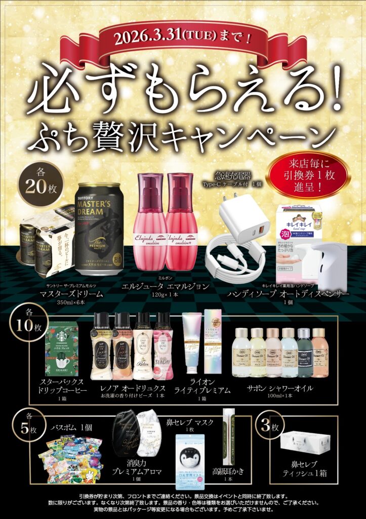 ※景品内容は数量限定のため、無くなり次第終了となります。
